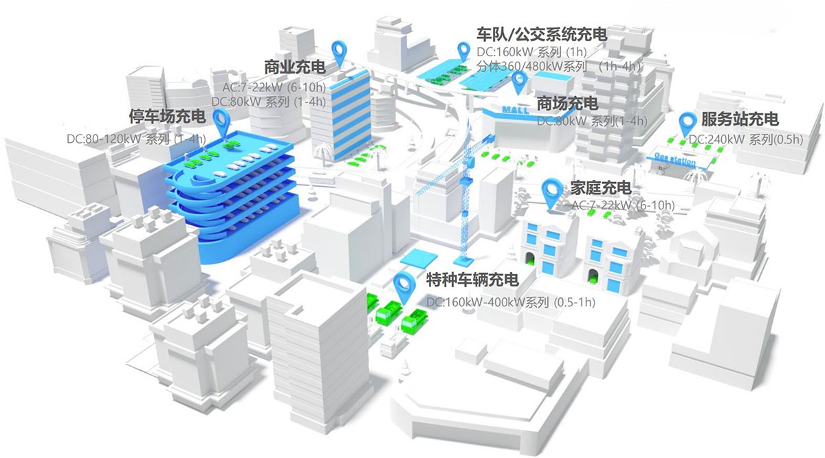 商用快充解決方案 家用充電解決方案 特種車輛充電解決方案 隨車應急解決方案 場站集群解決方案 個性化定制解決方案 云托管服務 售后支持